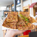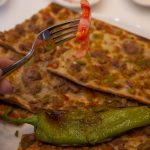 (Etli ekmek üzerine Konya yöresel köy peyniri)